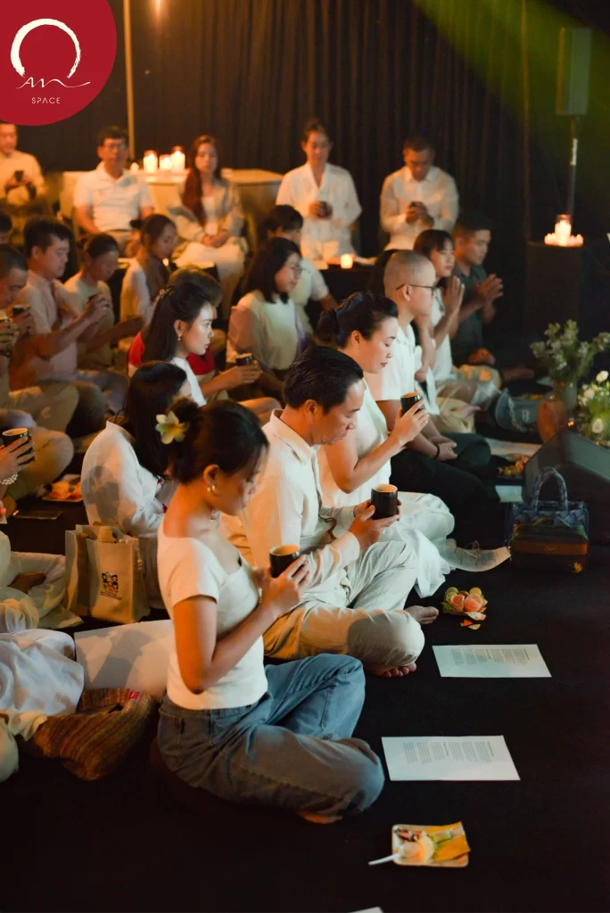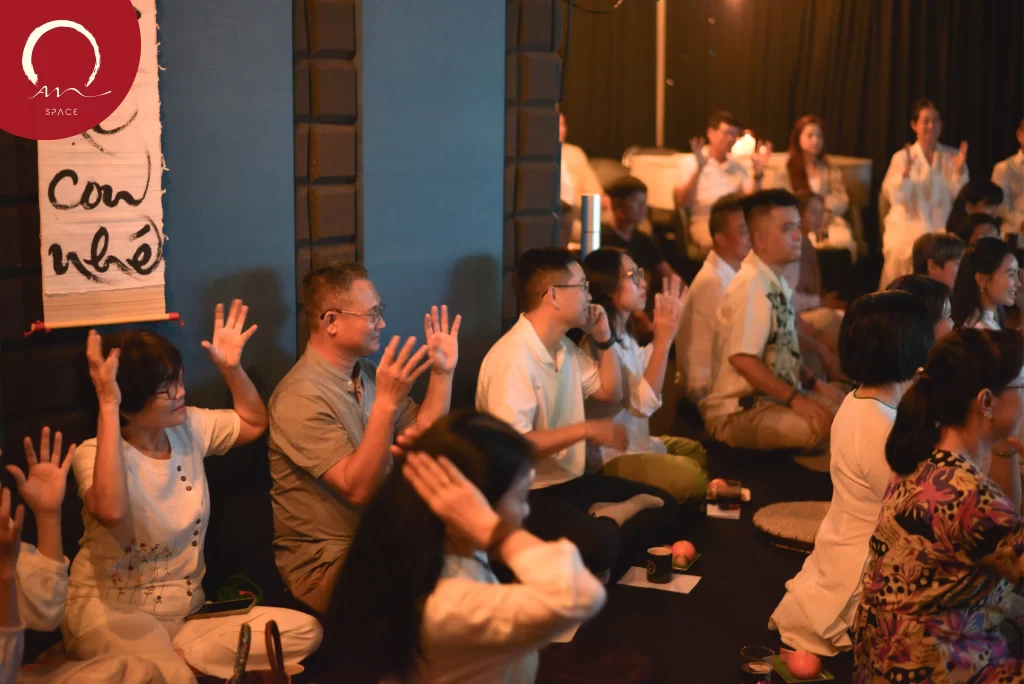 Sự kiện mở đầu với phần thiền trà do anh Đặng Trọng Ngôn, nhà sáng lập An Space, dẫn dắt. Những hướng dẫn tinh tế giúp mọi người thực hành chánh niệm qua từng ngụm trà, cảm nhận sự hòa hợp với vạn vật và buông bỏ lo âu, tạo nên sự kết nối nhẹ nhàng nhưng sâu sắc.