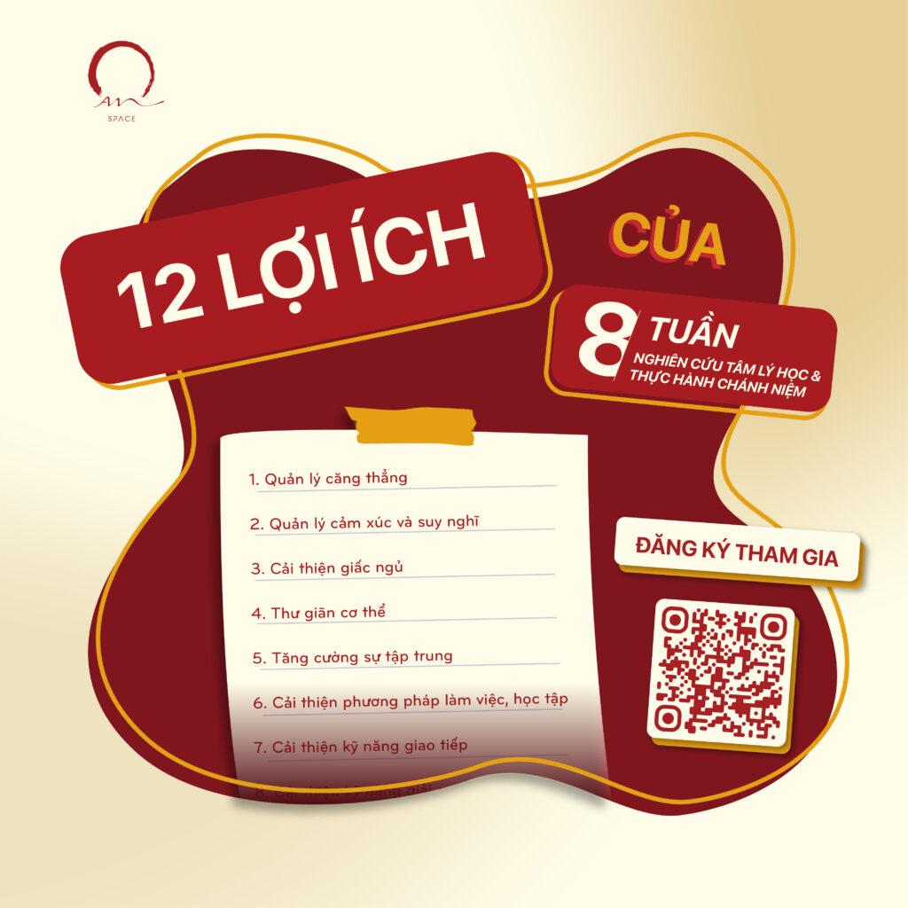 Khi tham gia chương trình 8 Tuần Nghiên Cứu Tâm Lý Học và Thực Hành Chánh Niệm bạn sẽ nhận được 12 lợi ích sau đây: